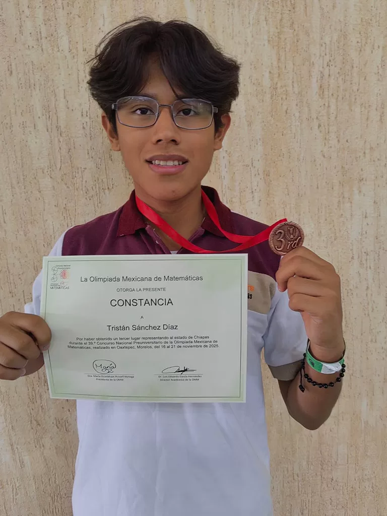 Tuxtla Gutiérrez, Chiapas. – El Colegio de Estudios Científicos y Tecnológicos del Estado de Chiapas (Cecytech) reconoció la destacada participación de Tristán Sánchez Díaz, estudiante del CECyT 07 Tapilula, quien