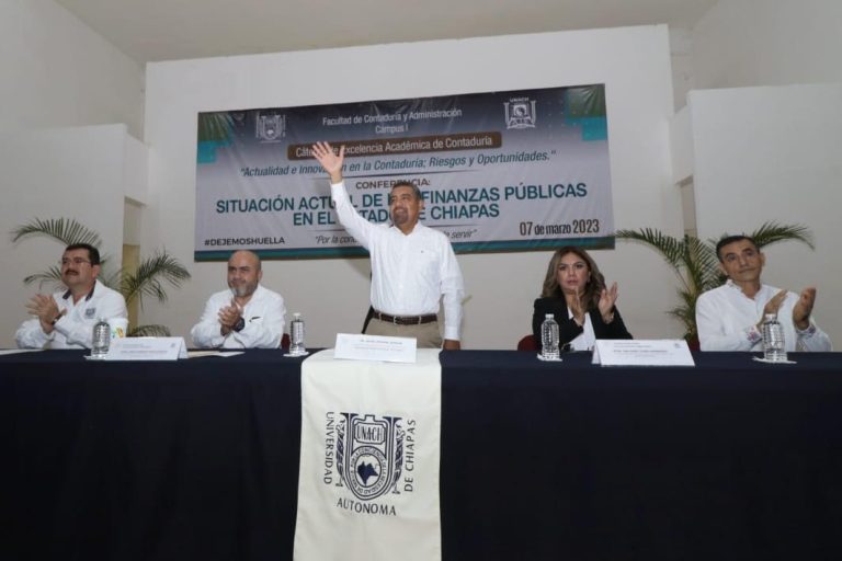 Tuxtla Gutiérrez, Chiapas; 8 de marzo del 2023.- El secretario de Hacienda, Javier Jiménez Jiménez, fue invitado por la Facultad de Contaduría y Administración de la Universidad Autónoma de Chiapas (Unach), a disertar la conferencia Situación Actual de las Finanzas Públicas en el Estado de Chiapas, ante jóvenes estudiantes de dicha licenciatura, personal docente y administrativos.