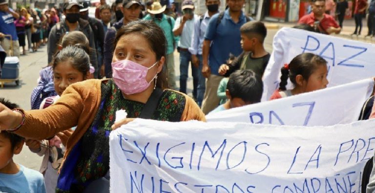 Tuxtla Gutiérrez, Chis.-Un centenar de indígenas tzotziles desplazados por la violencia, acompañados de un contingente de niños y niñas, marcharon este viernes por las calles principales de Tuxtla Gutiérrez, Chiapas, exigiendo justicia y la aparición con vida de personas desaparecidas.