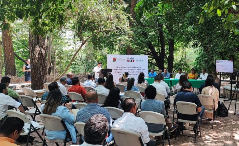 En ese sentido, la ley permite tener un impacto positivo a nivel estatal, así como nacional y a nivel mundial. Con esta finalidad se coordinan esfuerzos entre la Semahn, Política y Legislación Ambiental (POLEA), con apoyo financiero de la Embajada Británica en México y del Programa México UK-PACT (Partnering for Accelerated Climate Transitions) en el inicio del proceso de elaboración del Reglamento de la Ley para la Adaptación y Mitigación ante el Cambio Climático en el Estado de Chiapas.