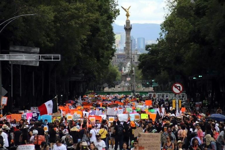Al momento, la manifestación se encuentra llegando a la Plaza de la Constitución.