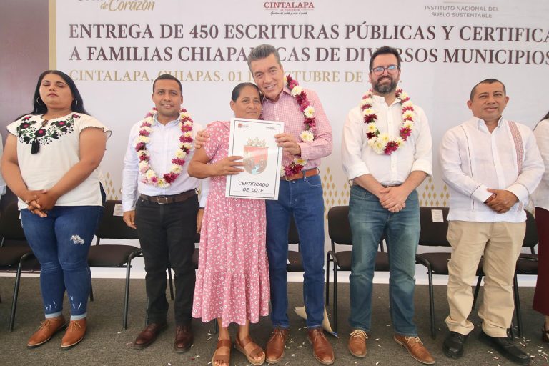 El mandatario explicó que estas acciones son necesarias para que las y los chapanecos estén más fortalecidos en su economía y vivan más tranquilos, por ello, dijo que, en colaboración con los tres órdenes de gobierno, se pasó de 249 escrituras que se entregaron en el sexenio anterior, a 5 mil 600 en lo que va de la actual administración estatal, además, se han regularizado 12 mil lotes agrarios y pronto se entregarán otros mil 500 certificados.