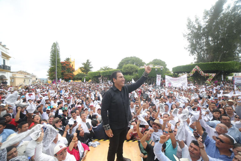 Con miles de manos alzadas como símbolo del deseo de las y los chiapanecos para que Eduardo Ramírez sea quien abandere el movimiento de la cuarta transformación en Chiapas, el líder morenista enfatizó que este proyecto inició con el consejo sabio de los adultos mayores, con la mirada fija de las mujeres que aspiran a vivir una vida libre de violencia, con las personas que tienen alguna discapacidad, con el sueño de las niñas y los niños, con los hombres y mujeres del campo, con nuestras hermanas y hermanos indígenas, inició y es abrazado por los jóvenes de Chiapas.