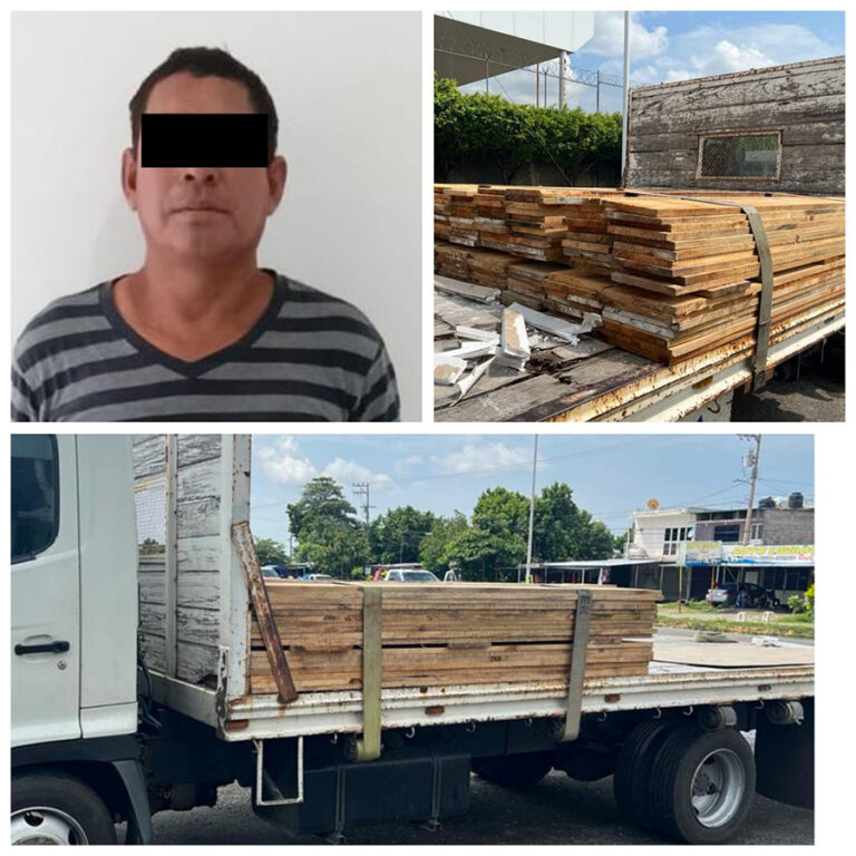 En el marco de la implementación de la Estrategia de Combate al tráfico y Comercialización de Materias Primas y Productos Forestales, el día de hoy, elementos de la Policía de Investigación en coordinación con personal de la Secretaría de Medio Ambiente e Historia Natural, Procuraduría Federal de Protección al Ambiente, en el punto de revisión sobre la carretera costera Huixtla-Tapachula, a la altura del Ejido Viva México, detuvieron a Eliazar “N” cuando transportaba 150 tablas de madera de pino y al solicitarle la documentación que amparara el legal transporte y procedencia del recurso forestal, no pudo acreditarlo.