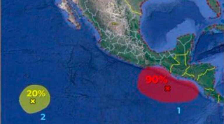 También se prevé la formación de otra zona de baja presión al sur-suroeste de Baja California Sur, la cual mantiene un 20% de probabilidad para desarrollo ciclónico en 7 días.