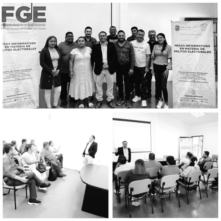 Tuxtla Gutiérrez, Chis., 15 MAR.-Como parte de las actividades encaminadas a prevenir la comisión de delitos electorales dentro del proceso electoral local ordinario, la Fiscalía General del Estado (FGE) a través de la Fiscalía de Delitos Electorales (FDE), impartió una Mesa Informativa sobre delitos electorales dirigido a Ministros y líderes de Culto Religioso de iglesias evangélicas en la ciudad de Comitán de Domínguez.