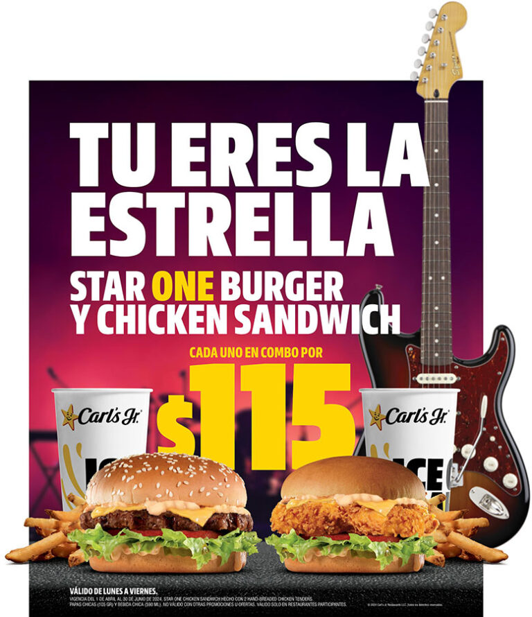 Para comprar el combo Star One Burger o el Star One Chicken Sándwich por 115 pesos, Carl’s Jr., tiene a disposición los servicios de entrega a domicilio por medio de Curb-side pick up o bien, ordena-recoge en sucursales participantes.