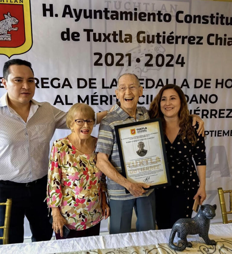 Primer Plano Magazine / Noé Juan Farrera Garzón.- Este 30 de septiembre, en un emotivo evento celebrado en el salón de eventos del restaurante Las Pichanchas, el Ayuntamiento de Tuxtla Gutiérrez, otorgó la Medalla de Honor al Mérito Ciudadano “Joaquín Miguel Gutiérrez” a Mario Enrique Esquinca Miceli, gracias a su gran mérito ciudadano.