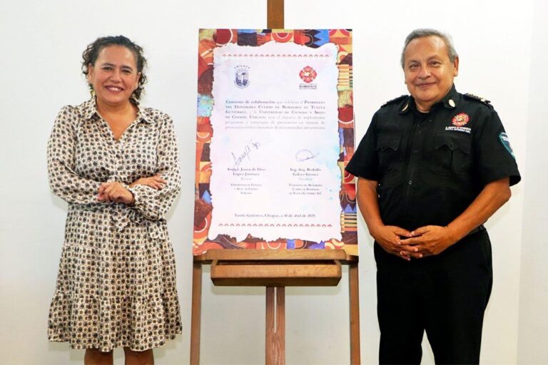 Lo anterior, quedó establecido en el convenio general de colaboración interinstitucional firmado por la rectora de la UNICACH, Fanny López Jiménez y el presidente del Patronato del H. Cuerpo de Bomberos, Rodulfo Gálvez Gómez.