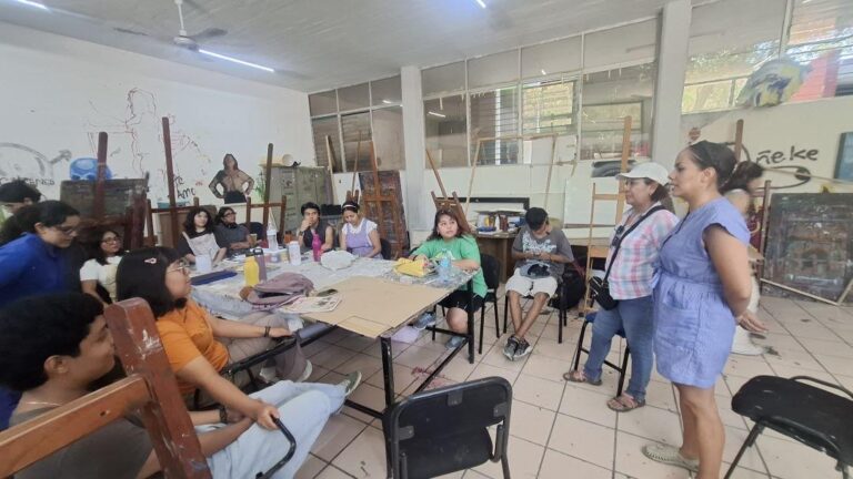 Las estudiantes, quienes cursan el séptimo semestre de la Licenciatura en Artes Visuales, trabajan en el Taller de Producción Terminal bajo la guía del docente Robie Espinoza.