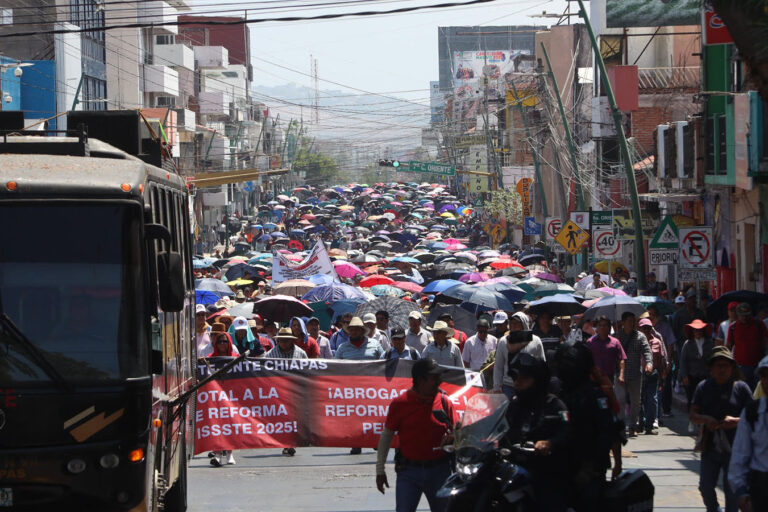 A pesar de que la presidenta de la República, Claudia Sheinbaum Pardo, dio marcha atrás a la reforma a la Ley del ISSSTE, los maestros de la Coordinadora Nacional de Trabajadores de la Educación (CNTE) realizaron una megamarcha y anunciaron un plantón de 72 horas en la capital chiapaneca.