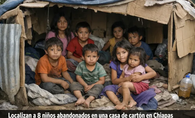 San Cristóbal de las Casas, Chiapas.— Ocho hermanas y hermanos menores de edad fueron localizados en condiciones de abandono y extrema precariedad dentro de una vivienda improvisada con cartón, láminas y plástico, en la comunidad de Selva Natividad.