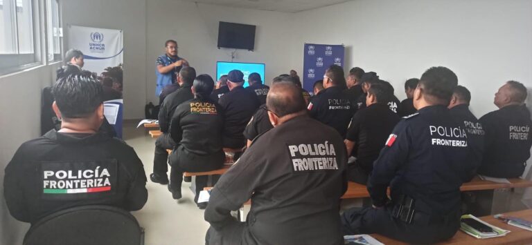 Tapachula, Chiapas.- La Agencia de la ONU para los Refugiados en México (ACNUR) capacitó a elementos de la Secretaría de Seguridad y Protección Ciudadana del Estado en materia de “Derecho Internacional de Refugiados”.