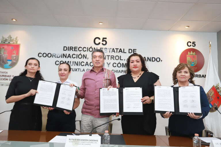 Desde las instalaciones del C5, en la ciudad de Tuxtla Gutiérrez, se llevó a cabo la firma de los convenios de colaboración para los procesos electorales federal y estatal 2024 entre la Secretaría de Seguridad y Protección Ciudadana (SSyPC), el Instituto Nacional Electoral (INE) y el Instituto de Elecciones y Participación Ciudadana (IEPC), ante la presencia del gobernador Rutilio Escandón Cadenas como testigo.