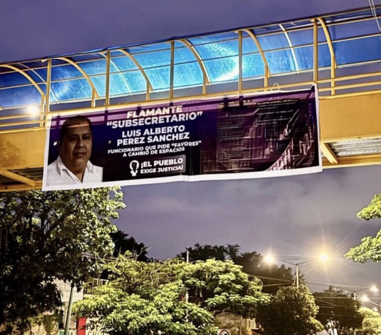 Tuxtla Gutiérrez, 3 de septiembre de 2025 (El Sol de Chiapas).- La capital chiapaneca amaneció este miércoles con varias lonas colgadas en distintos puntos de la ciudad, en las que se acusa al subsecretario de Infraestructura Social del estado, Luis Alberto Pérez Sánchez, de presunto acoso sexual y condicionamiento de plazas laborales.