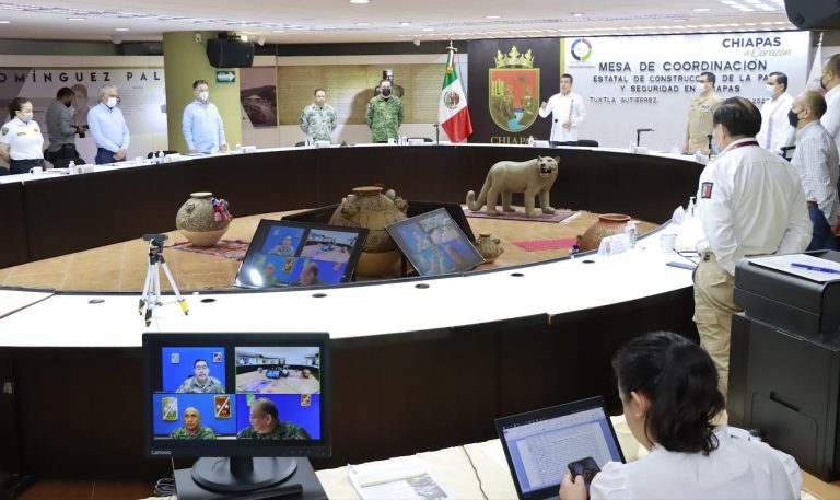 Durante la Mesa de Coordinación Estatal para la Construcción de la Paz y la Seguridad, el gobernador Rutilio Escandón Cadenas agradeció al Ejército Mexicano, Marina, Guardia Nacional y corporaciones federales, estatales y municipales de seguridad y protección civil, por el trabajo que, desde hace varios días, llevan a cabo con la misión de brindar auxilio y apoyo humanitario a las personas damnificadas, además de realizar tareas de rehabilitación de los daños en viviendas e infraestructura pública, a causa de las lluvias.