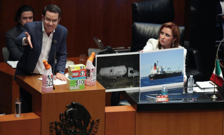 “Después Morena, y digo Morena porque nosotros votamos en contra de la ley de ingresos, agrega un impuesto que se llama IEPS de 7 pesos, ya vamos en 17 pesos. Pues Morena agrega otro impuesto que es el IVA 3 pesos. Ya vamos en 20 pesos y finalmente gastos logísticos de comercialización llevan a los 23 pesos que en promedio se pagan en el país.