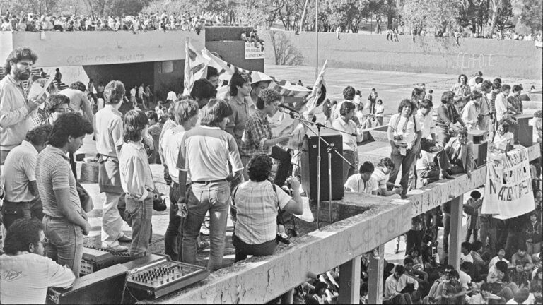 Entre las fotografías que visten la publicación “Una académica en la Presidencia”, de la Gaceta de la Universidad Nacional Autónoma de México (UNAM), dedicada a la presidenta electa, Claudia Sheinbaum, puede verse la imagen de su amigo y compañero de lucha, Antonio Santos, en alguno de los mítines de los que formaban parte como integrantes del Consejo Estudiantil Universitario (CEU).