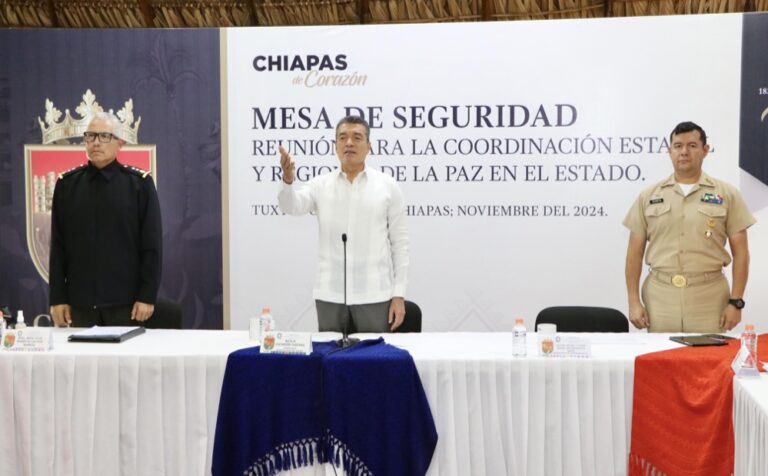 Asimismo, agradeció al Ejército Mexicano, la Marina, Guardia Nacional, a las corporaciones federales, estatales y municipales de seguridad, protección civil, de procuración de justicia, al Instituto Nacional de Migración, al Centro Nacional de Inteligencia, a la Comisión Estatal de Derechos Humanos, órganos autónomos y otras instancias de gobierno, por el trabajo que todos los días hacen para auxiliar y proteger a las chiapanecas y los chiapanecos.