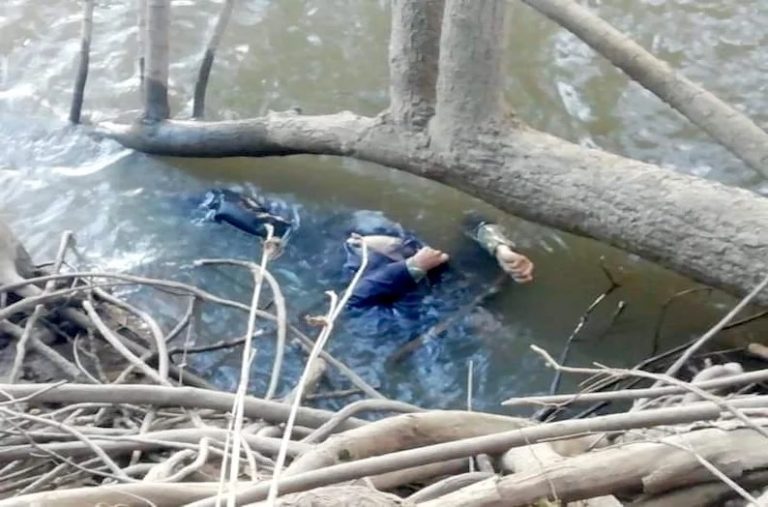 El occiso, identificado como Guillermo González Pérez, de 51 años, estaba atorado entre las ramas de un árbol que se encuentra en el afluente.