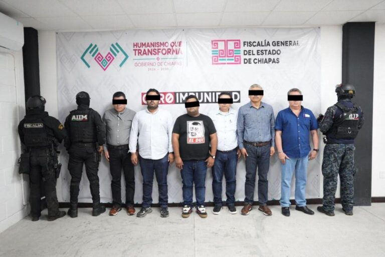 Tuxtla Gutiérrez, Chis., 31 OCT.-La Fiscalía General del Estado y la Secretaría de Seguridad del Pueblo ejecutaron órdenes de aprehensión en contra de seis servidores públicos del Colegio de Bachilleres de Chiapas, como presuntos responsables del delito de extorsión agravada, cometido en perjuicio de una persona del sexo femenino de identidad reservada, en Tuxtla Gutiérrez, Chiapas.