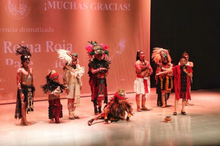 La conferencia titulada “La Reina Roja de Palenque: Crónica de un descubrimiento”, dirigida y producida por el maestro Hiram Marina, combinó danza, música, narrativa histórica y divulgación científica, en una innovadora puesta en escena que busca acercar a las nuevas generaciones al patrimonio cultural y arqueológico de Chiapas.