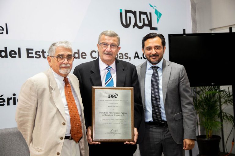 Al dar la bienvenida en Chiapas a Roberto Escalante Semerena, secretario general de la Unión de Universidades de América Latina y el Caribe (UDUAL), en nombre del Gobierno del Estado, el secretario de Economía y del Trabajo (SEyT), Carlos Salazar Estrada, atestiguó la entrega del reconocimiento realizada por la Unión de Universidades de América Latina y el Caribe al Instituto de Administración Pública del Estado (IAP Chiapas), uno de los Institutos más emblemáticos y profesionales de este gobierno liderado por Rutilio Escandón Cadenas.