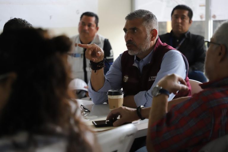 Previo a la supervisión, el secretario encabezó una reunión de trabajo con personal de la constructora que desarrolla la obra, como se realizará periódicamente durante la ejecución del proyecto, tal como lo instruye el gobernador Rutilio Escandón.