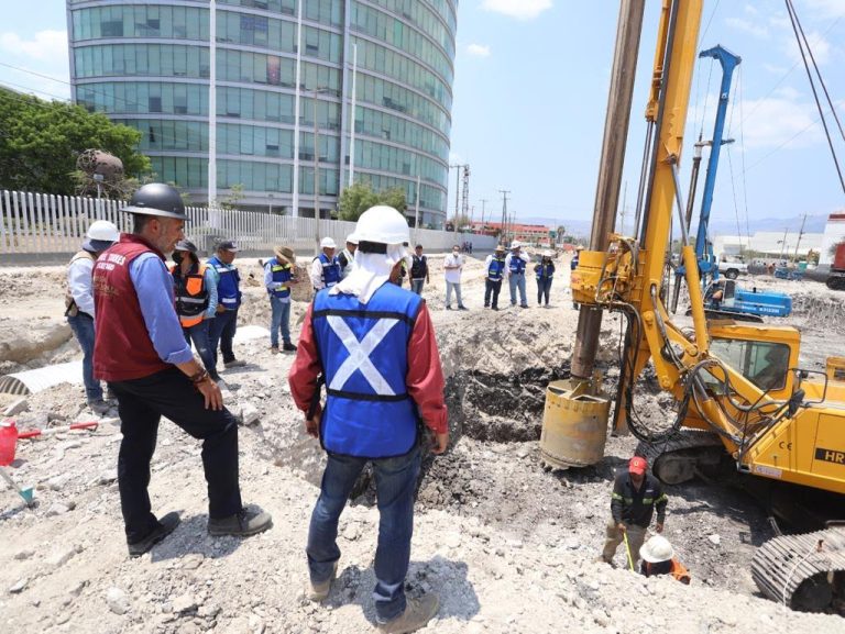 Durante el recorrido por la zona de la obra, el funcionario estatal explicó acerca de la continuidad de las perforaciones para los pilotes, la armadura de zapatas y el avance de la libranza de las torres de la Comisión Federal de Electricidad (CFE).