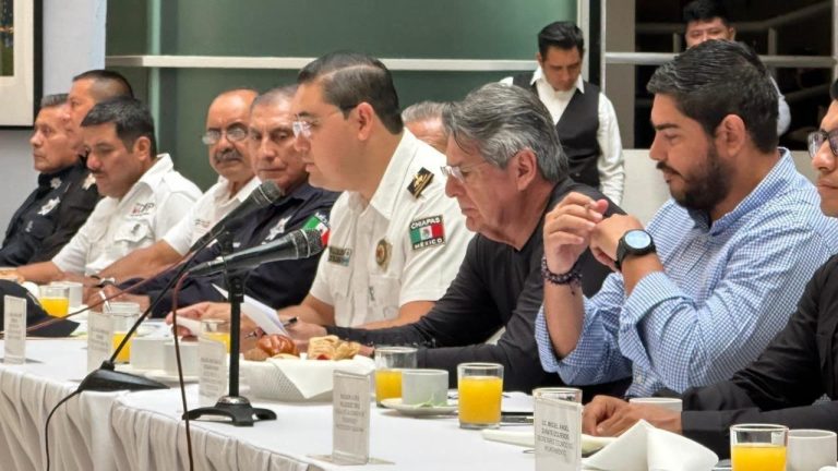 En este encuentro estuvieron presentes el secretario técnico del Ayuntamiento, Miguel Ángel Zárate Izquierdo, y los regidores de la Comisión de Seguridad y Protección Ciudadana, José Ranulfo Esquinca Kobeh y William Alexis Velázquez.