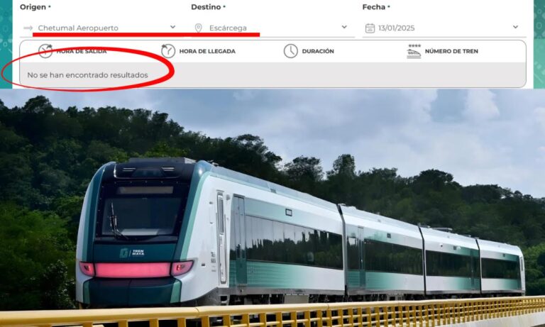 Sin embargo, esto no se informa en la página web de venta de boletos, donde simplemente alguien que necesita viajar de Chetumal a Escárcega no puede completar la operación si acaso necesita abordar el tren un lunes, miércoles, jueves o sábado.