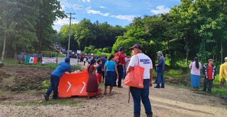 Palenque, Chis.-Campesinos del municipio de Salto de Agua realizaron una caravana hacia las oficinas del Tren Maya en Palenque, en donde instalaron un plantón para exigir la instalación de una mesa de diálogo con autoridades federales.