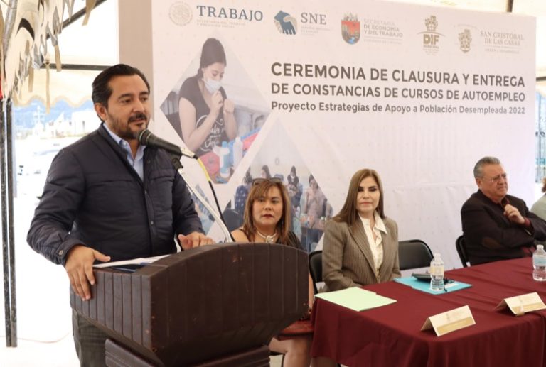 Con el objetivo de seguir construyendo historias de éxito que mejoren la calidad de vida de las personas y sus familias, la Secretaría de Economía y del Trabajo (SEyT), que encabeza Carlos Salazar Estrada, en coordinación con el Ayuntamiento de San Cristóbal de Las Casas que preside Mariano Díaz Ochoa, llevó a cabo la clausura de tres cursos de capacitación en las especialidades de Manualidades, Elaboración de Alimentos y Uñas Acrílicas.