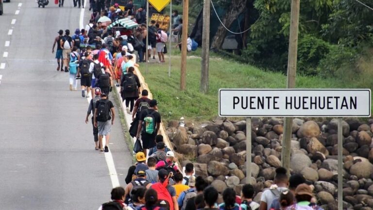 Este contingente de indocumentados, en su mayoría de Venezuela, caminó 26 kilómetros y unas 10 horas continuas desde Tapachula, Chiapas, hasta Huehuetán, donde se dividió en dos grupos.