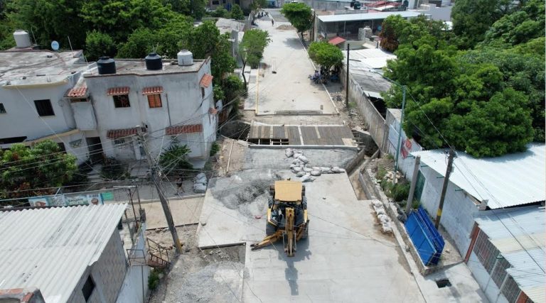 La Secretaría de Obras Públicas informó que también se realizan trabajos de reconstrucción en el embovedado del Arroyo San Roque ubicado en la 1ª Norte y 7ª Oriente en el centro de la ciudad.