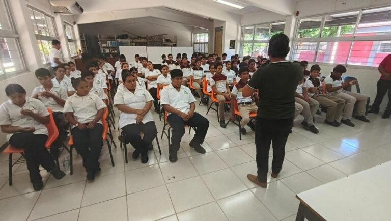 Acapetahua, Chiapas.– Con el propósito de fomentar una cultura de autocuidado y bienestar integral, el Colegio de Estudios Científicos y Tecnológicos del Estado de Chiapas (Cecytech) Plantel 06 Acapetahua realizó una plática motivacional dirigida a estudiantes de primer semestre de las diferentes carreras técnicas, enfocada en la prevención de adicciones y la promoción de estilos de vida saludables.