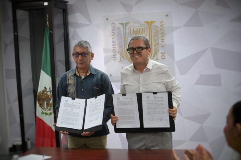 Tuxtla Gutiérrez, Chiapas.- El Colegio de Estudios Científicos y Tecnológicos del Estado de Chiapas (Cecytech) y la Benemérita Universidad Autónoma de Chiapas (Unach) firmaron un Convenio General de Colaboración con el objetivo de fortalecer acciones conjuntas en materia académica, científica, tecnológica y de vinculación, en beneficio de la formación integral de las y los estudiantes.