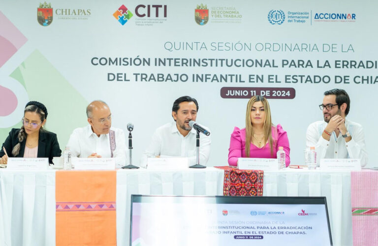 Al encabezar la instalación de la 5ª Sesión Ordinaria de la Comisión Interinstitucional para la Erradicación del Trabajo Infantil en el Estado de Chiapas (CITI), el vicepresidente de este organismo, en representación del mandatario estatal, quien funge como presidente de la CITI, llamó a los sectores gubernamental, académico y privado que la integran, a visibilizar la explotación laboral a que son sometidos miles de niñas, niños y adolescentes, con la finalidad de cerrar filas reforzando las estrategias interinstitucionales que reduzcan la tasa de ocupación laboral infantil en la entidad chiapaneca.