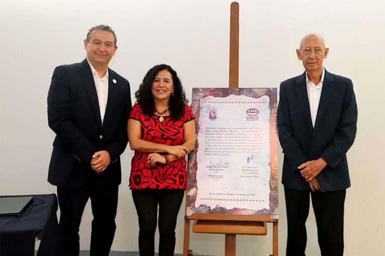 Tuxtla Gutiérrez, Chis., 28 MAY.-La Universidad de Ciencias y Artes de Chiapas (UNICACH) y la empresa Space Zero Gravity México, firmaron un convenio general de colaboración para fortalecer acciones conjuntas enfocadas al desarrollo académico, científico y tecnológico.