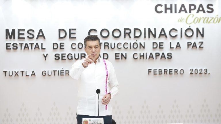 En el Marco de la Mesa de Coordinación Estatal para la Construcción de la Paz y la Seguridad, el mandatario reconoció al Ejército Mexicano, la Marina, Guardia Nacional, a las corporaciones federales, estatales y municipales de seguridad y protección civil, a las mujeres y hombres que integran los Comités Comunitarios de Protección Civil, por el auxilio que brindan al pueblo chiapaneco ante cualquier emergencia.