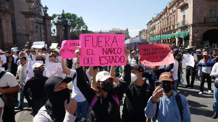 Los alumnos de la Universidad Michoacana de San Nicolás de Hidalgo arribaron cerca de las 14:00 horas frente al recinto de Gobierno, en Avenida Madero, donde encontraron un cerco formado por vallas y la puerta principal cercada por elementos de la Guardia Civil y Policía del estado.