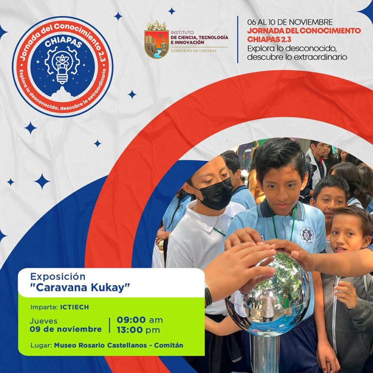 Mencionó que el viernes 10 de noviembre se abren actividades en el auditorio del Museo Chiapas de Ciencia, Tecnología e Innovación (MUCH), con la conferencia «El papel de la juventud chiapaneca en el desarrollo espacial de México», por Fermín Romero Vázquez, de la Fundación Acercándote al Universo.