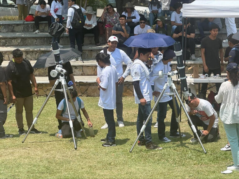 Tuxtla Gutiérrez, Chis., 08 ABR.-Estudiantes, docentes, administrativos y visitantes respondieron a la convocatoria de la Universidad Autónoma de Chiapas para reunirse en el Parque Hundido y disfrutar de la experiencia de observar el eclipse de sol, apoyados con telescopios y lentes especiales indispensables para llevar a cabo esta acción de manera segura.