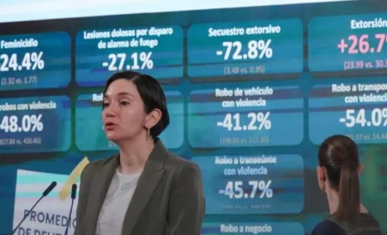 “En el caso de extorsión —también como hemos informado en este Reporte Mensual de Incidencia Delictiva—, este delito presentó en esta comparación de periodos, de 2019 a 2025, un incremento del 22.9; sin embargo, a partir de julio, que se puso en marcha la Estrategia Nacional contra la Extorsión, se han tenido tres meses consecutivos a la baja, lo que implica una disminución del 14 por ciento, insisto, desde la puesta en marcha de esta estrategia nacional”, explicó.