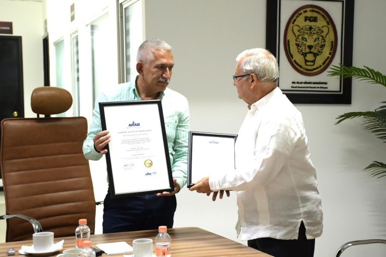 Reunidos de forma presencial y virtual, con el fiscal general del Estado, Olaf Gómez Hernández, el director de ICITAP México, Kyle Grimes; el asesor en materia Forense de la Embajada de los Estados Unidos, Miguel Oscar Aguilar Ruiz; el coordinador de Estrategia de ICITAP, Alfredo Hernández; el oficial de la Sección Política de la Embajada de Estados Unidos, Dorian Molina; y la asesora de Seguridad de la Embajada de Estados Unidos, Citlalli Torres, entregaron estos certificados, al tiempo de reconocer el trabajo comprometido de la FGE Chiapas para obtener estas acreditaciones y reacreditaciones.