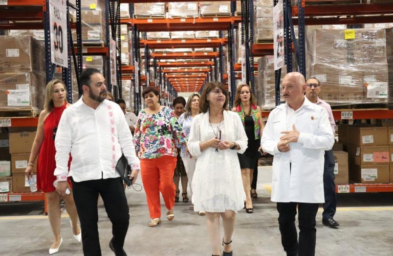 Durante su estancia en la entidad para atestiguar la entrega de equipamiento al Laboratorio Estatal de Salud Pública (LESP), de Chiapas para la realización de pruebas de diagnóstico de tamiz neonatal en la Región Sur-Sureste del país, el secretario de Salud del estado, doctor Pepe Cruz, guió a sus homólogas de Colima y Durango, Martha Janeth Espinoza Mejía e Irasema Kongo Padilla, respectivamente, así como a la directora del LESP de Coahuila, Ana María Aguilar Brondo, en un recorrido por el Centro de Almacenamiento y Distribución de Medicamentos e Insumos para la Salud “Chiapas de corazón”.