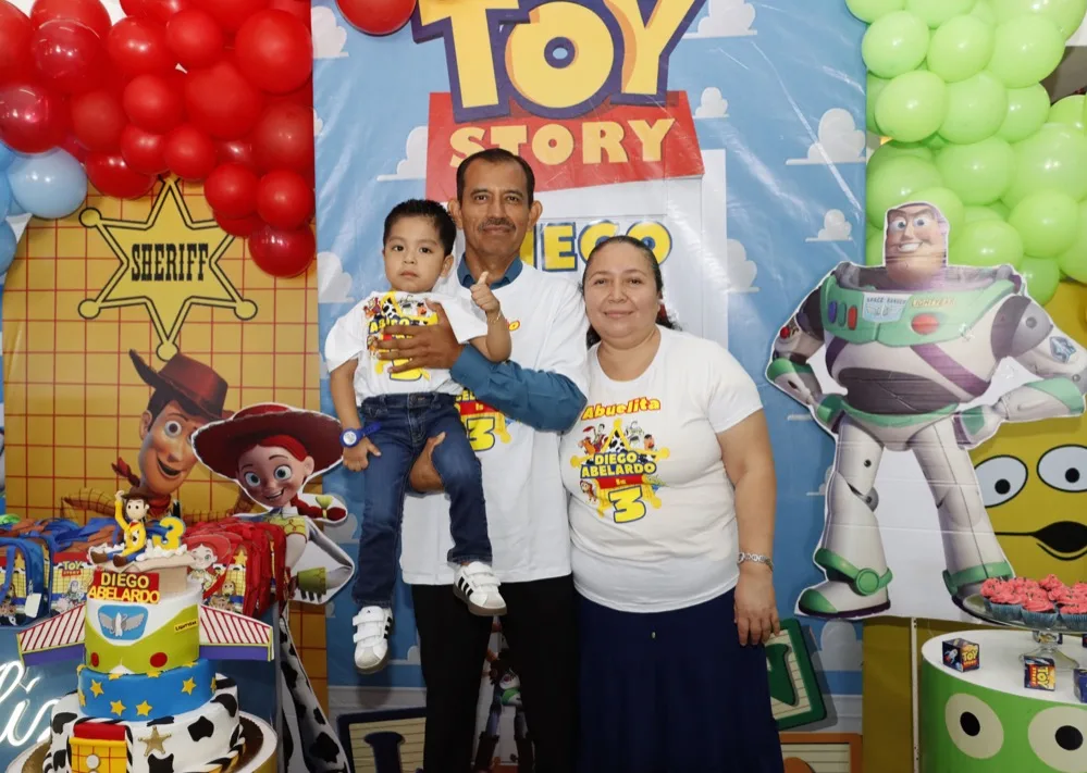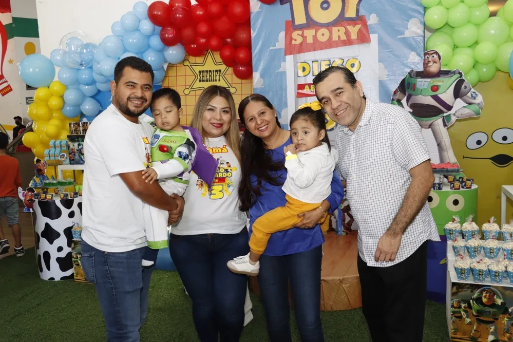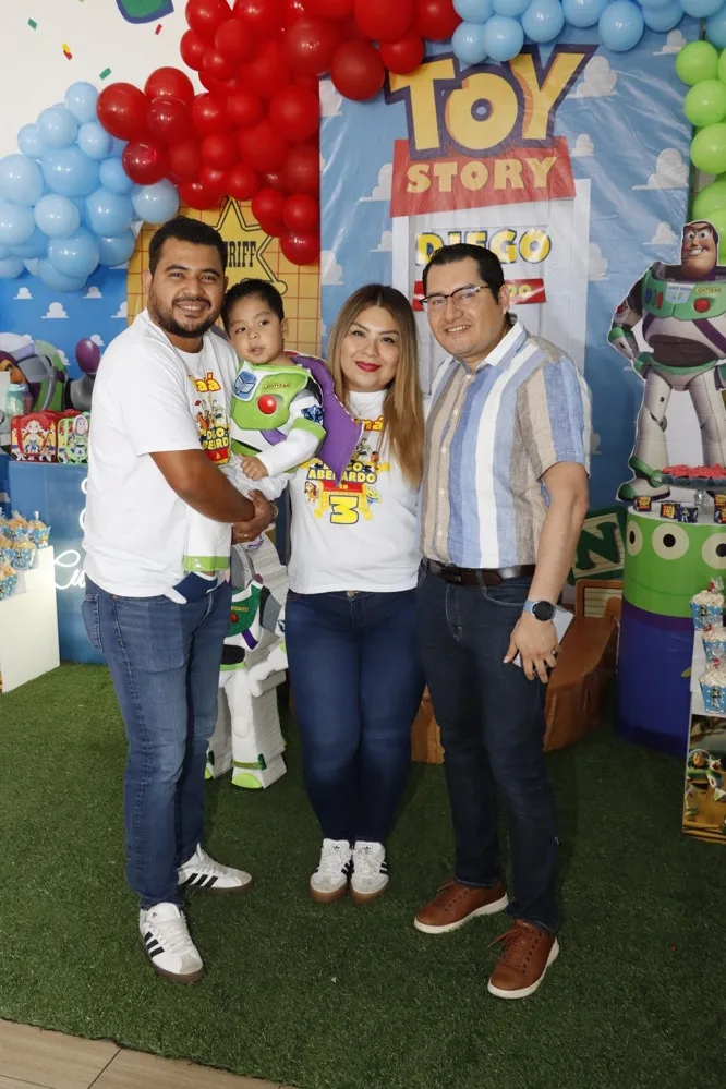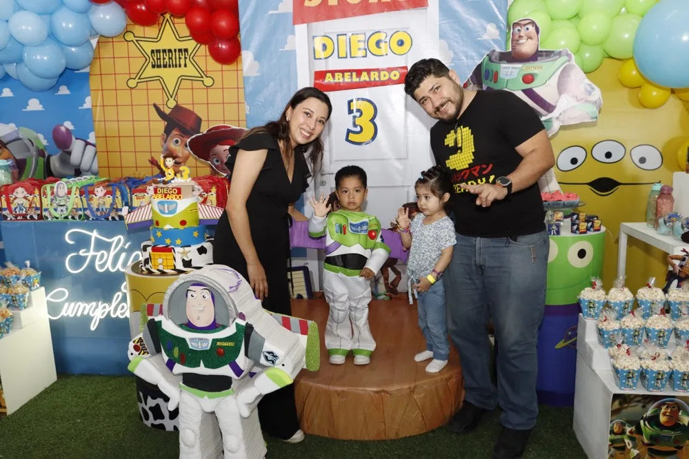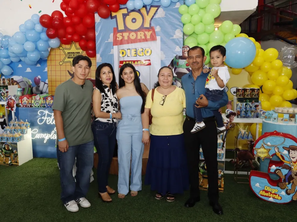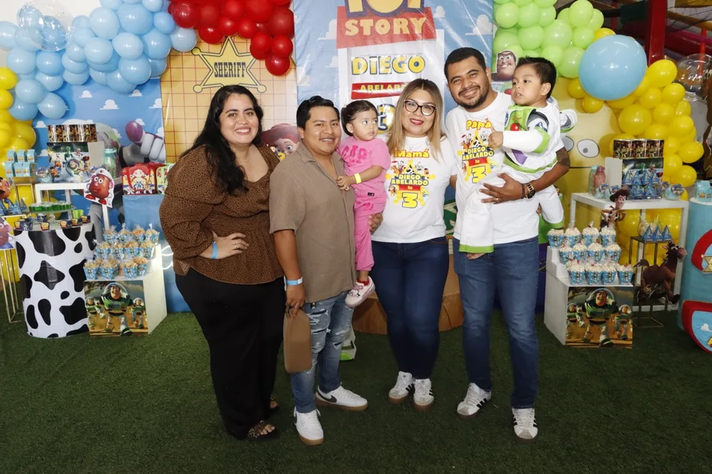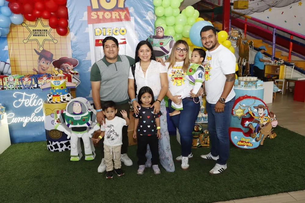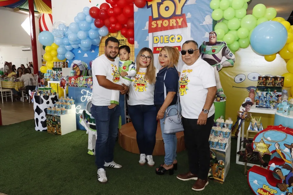Regalos y abrazos de buenos deseos le otorgaron al pequeño Diego Abelardo de León en su fiesta de cumpleaños que le festejaron en el salón Exploriland al estilo de su película animada favorito “Toy Story”. Muy contento disfrutó de las golosinas, bocadillos y entretenidos juegos, donde se la pasó de lo mejor con los amigos, quienes animados se reunieron para cantarle las “mañanitas” y tomarse la fotografía del recuerdo, para, después dirigirse a partir las piñatas.