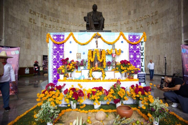 “Hoy con estos tres altares que representan el sentimiento popular de nuestro pueblo de Chiapas, conmemoramos y recordamos, con mucho respeto, a nuestros fieles difuntos”, expresó.