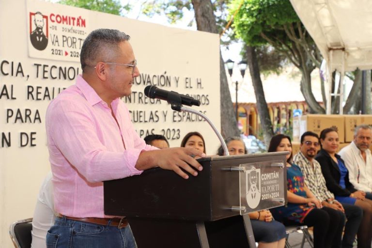 Comitán de Domínguez, Chiapas.- Las niñas, niños y juventud de Comitán hoy cuentan con más y mejores herramientas de conectividad que permiten mejorar su rendimiento académico, con la entrega de 84 equipos a escuelas y parques públicos de este municipio por parte del director general del Instituto de Ciencia, Tecnología e Innovación (ICTI), Helmer Ferras Coutiño.