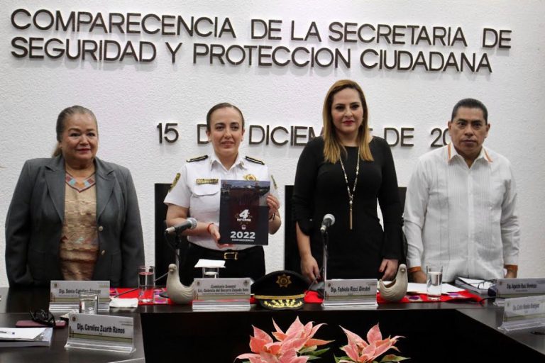 En el marco de la comparecencia que estuvo encabezada por Sonia Catalina Álvarez, presidenta del Honorable Congreso del Estado y la diputada Fabiola Ricci Diestel, presidenta de la Comisión de Seguridad Pública; Zepeda Soto informó del cumplimiento de las directrices de Acciones Operativas, Vinculación Ciudadana y Dignificación Policial que ha instruido el gobernador Rutilio Escandón Cadenas para proteger y servir de manera oportuna y eficiente a la ciudadanía.